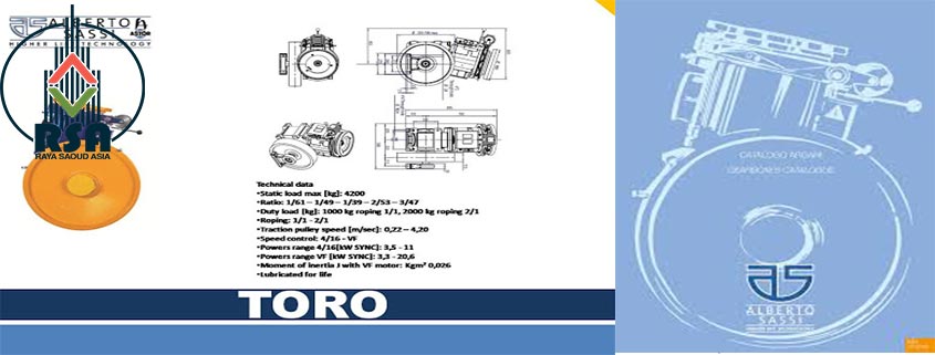 از نکاتی که در مورد این موتور گیربکس آسانسور حائز اهمیت است: استاتیک لود بالای آن است به طوری که استاتیک لود آن بالای 4200 کیلوگرم است.این موتور گیربکس علی رغم توان تحمل بالا دارای ابعاد کوچک و جم وجور است.و قابلیت نصب در سه جهت عمودی ، افقی و چپ و راست را داراست.موتور TORO به صورت تک سرعته و دو سرعته به بازار عرضه می گردد.